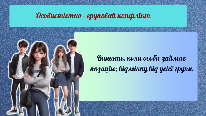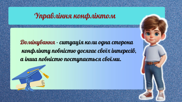 Ситуація 2. На уроці історії вчитель розділив клас на групи для спільної роботи над проєктами. Микита і Анна потрапили в одну групу. Микита відразу взяв на себе роль лідера і почав командувати іншими, не враховуючи їхніх думок і пропозицій. Коли Анна спробувала висловити свою ідею, Микита перебив її і сказав, що це дурниця. Анна відчула себе зневаженою і почала принижувати Микиту, саркастично коментувати кожну його дію. Інші члени групи підтримували то одну, то іншу сторону, що призвело до загального конфлікту. Проєкт залишився незавершеним.